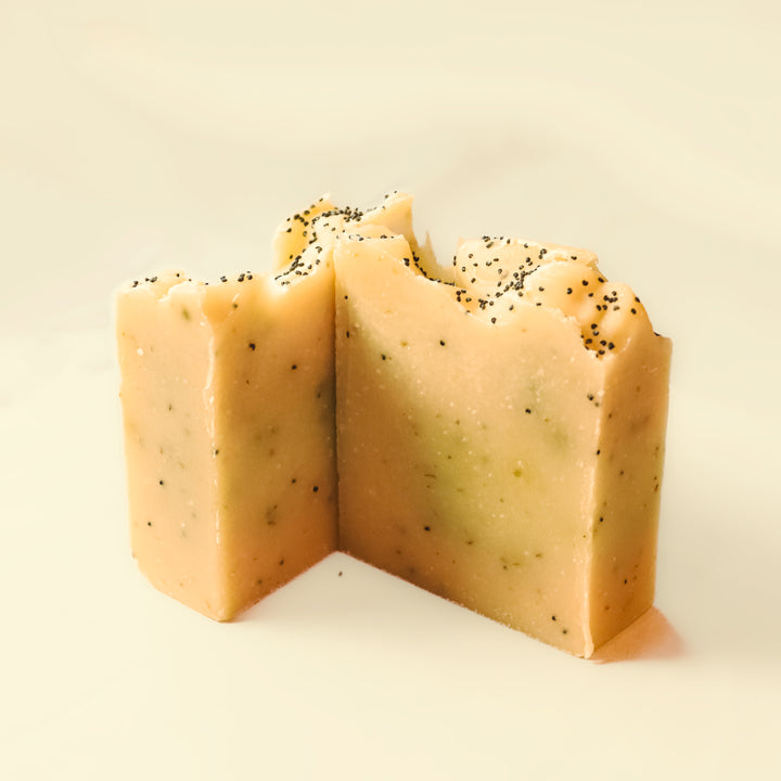 This fresh-scented Avocado Oil soap is formulated with essential oils of Coriander and Lime, infused with coriander herbs, and decorated with poppy seeds. The natural oils in avocados can deeply penetrate the skin to nourish, soften, and hydrate leaving your skin nourished. It's hydrating and nourishing properties create a soft and smooth texture, perfect for all skin types. Experience a noticeably naturally healthy and vibrant glow with every wash.
