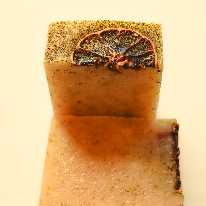 Infused with the essential oils of Cedarwood and Lavandin creating a fresh aroma topped with dried slices of lemon and dill this soap is gentle and nourishing both to smell and on your skin.