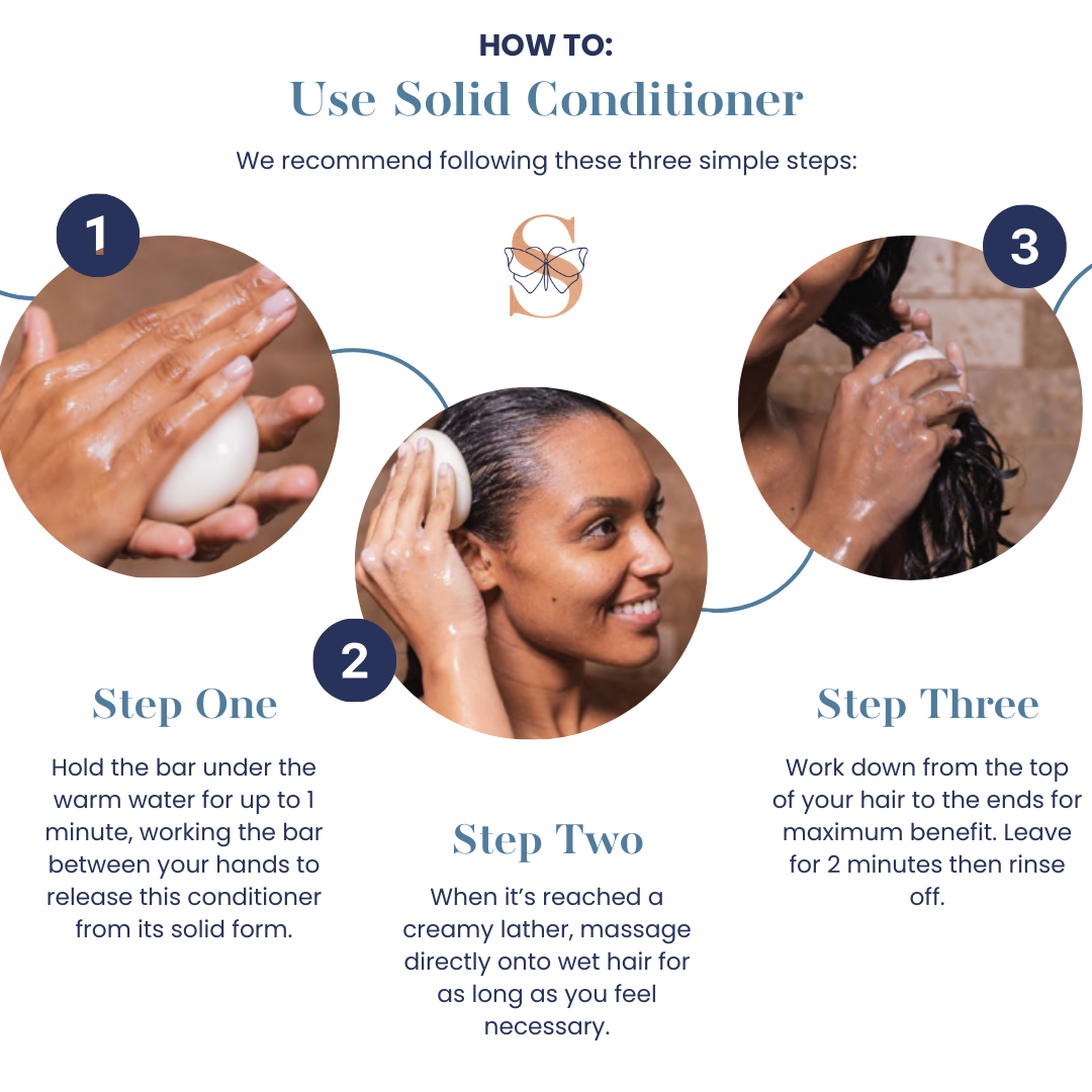 Natural Ingredients: Our conditioner bar is made with natural, plant-based ingredients, free from harmful chemicals and synthetic fragrances.