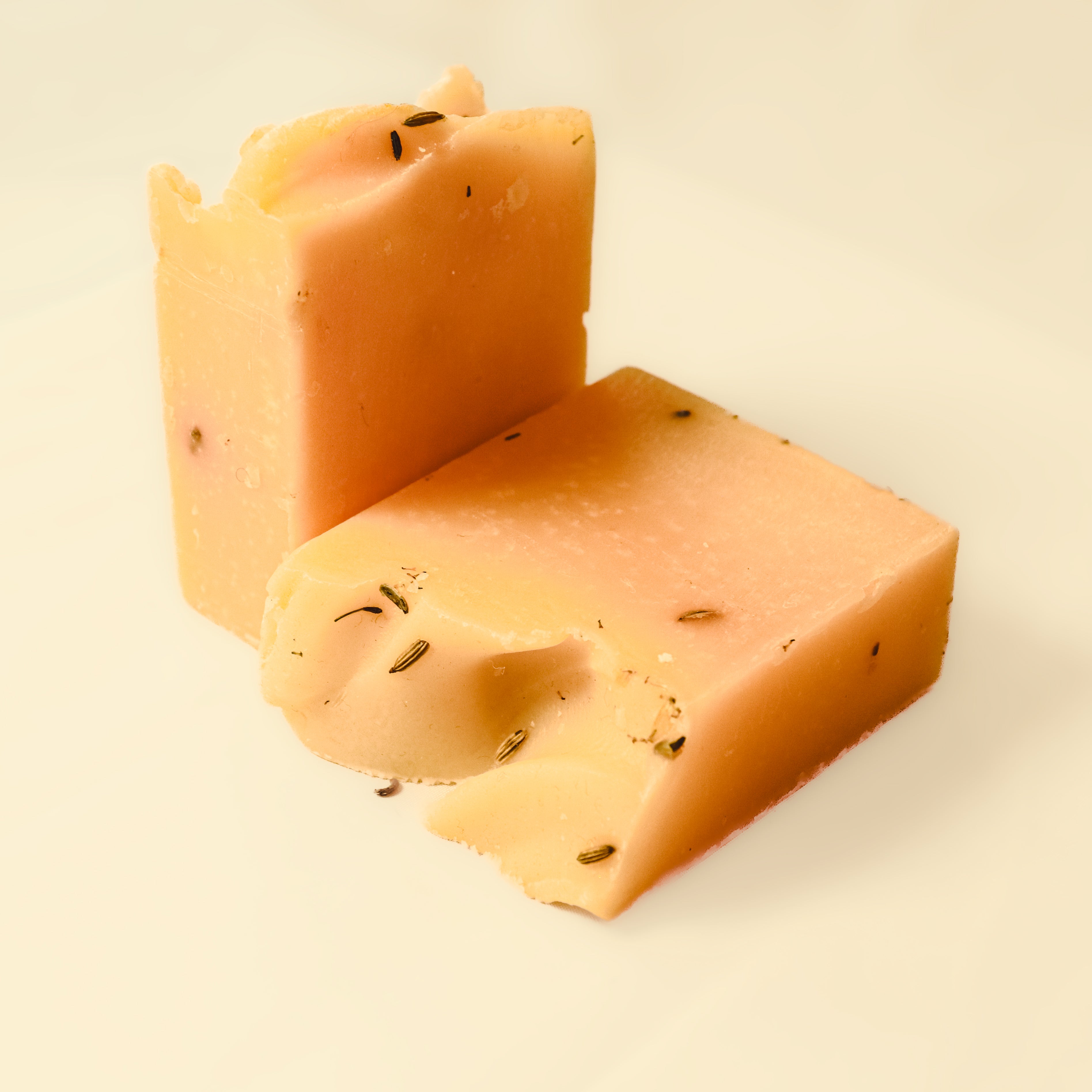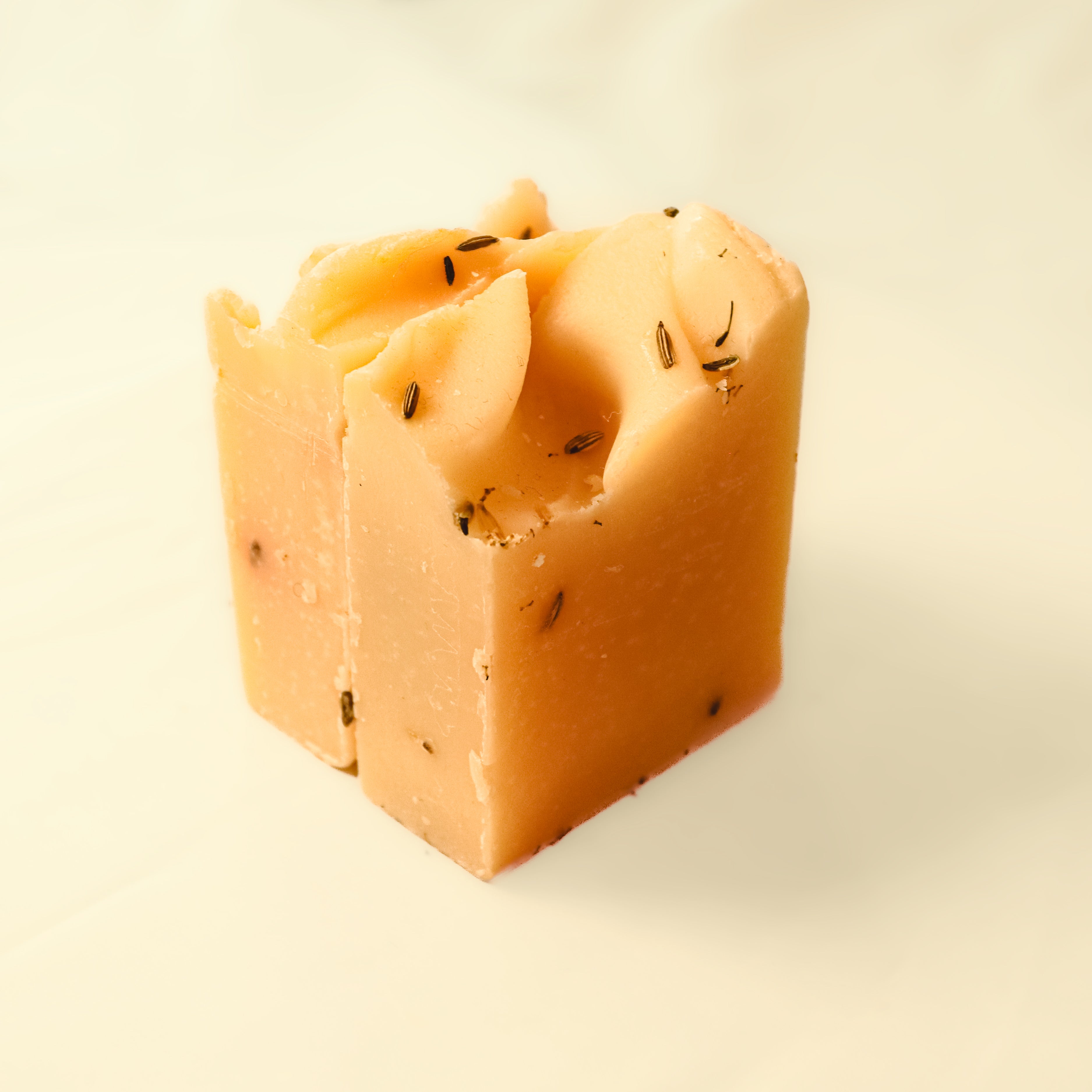 This soap, infused with Jojoba oil is subtly scented and has properties that help reduce skin redness, lessen eczema symptoms, and keep the skin soothed. It features a blend of rich butter and essential oils like Tea Tree, Litsea, and Cubeba, making it suitable enough even for facial use. Ground fennel seeds enhance the calming effects.