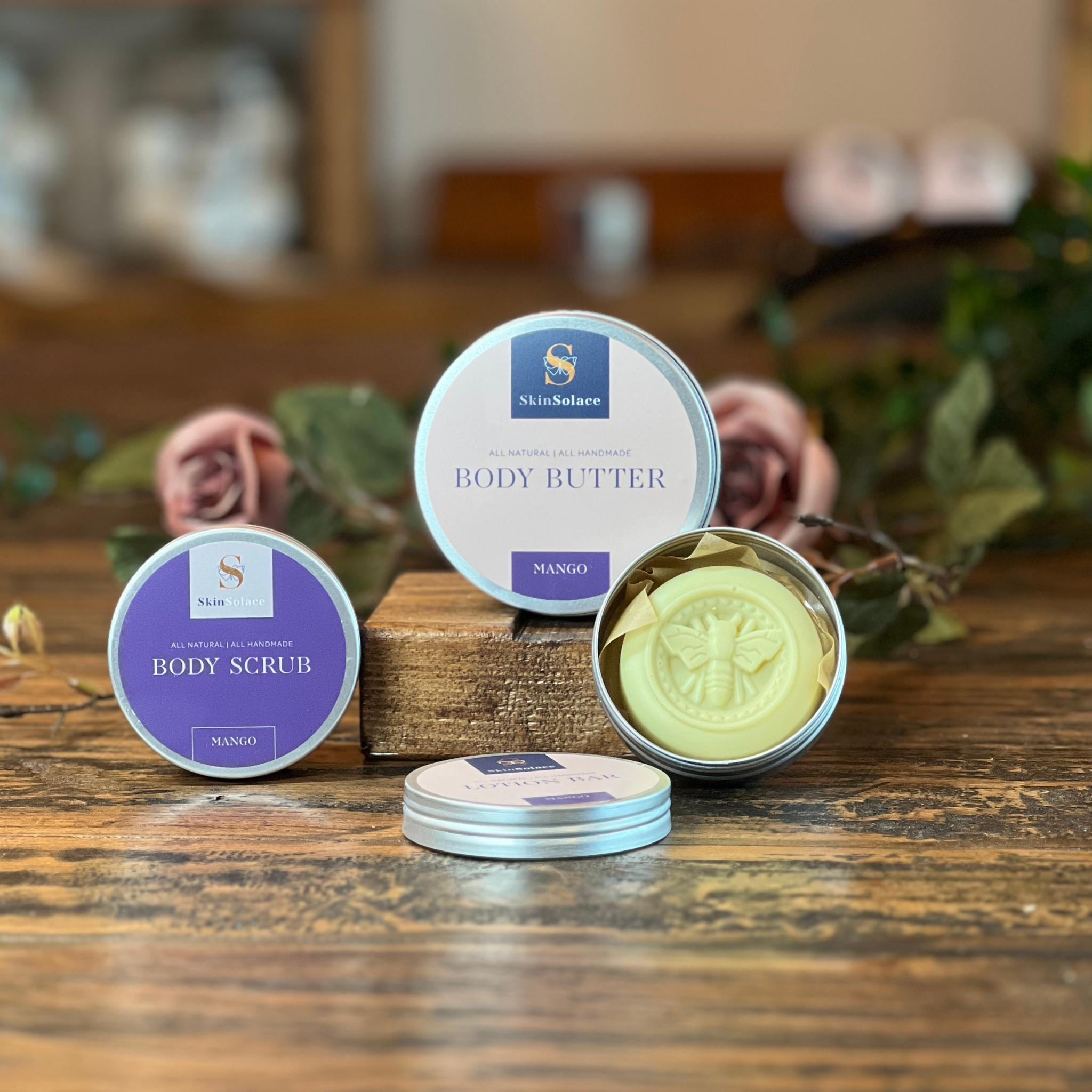 Mango Lotion Bar, Mango Body Butter & Mango Body Scrub