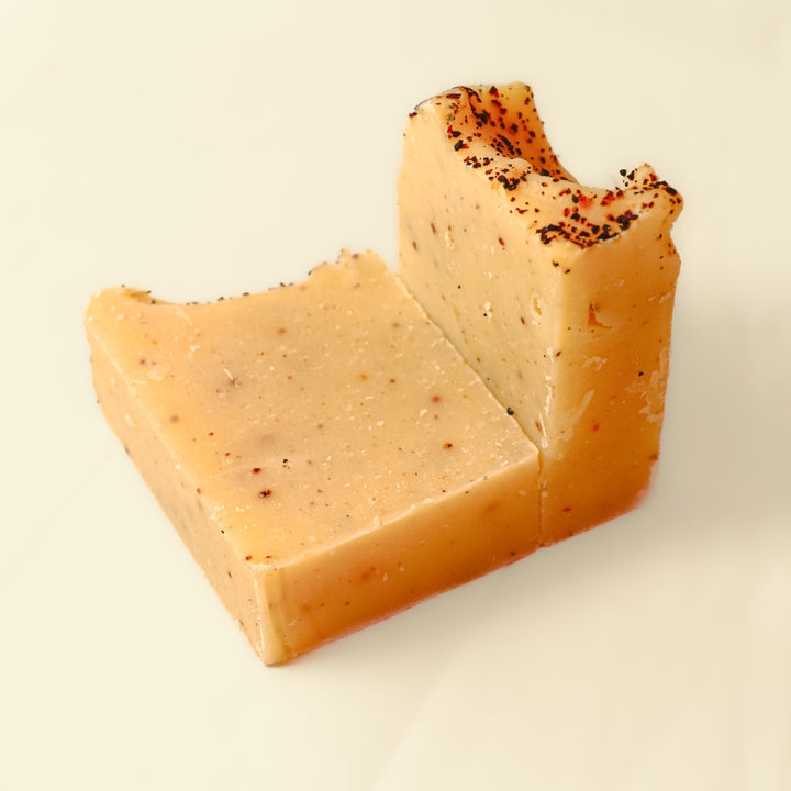 A relaxing soap with essential oils of Lavender with grounded rosehip powder as well as rosehip oil which makes this soap a great healer. Rosehip oil naturally contains essential fatty acids which have great moisturising and anti-ageing properties. A potent combination, this soap helps to restore hydration while calming inflammation and protecting your skin. Enjoy a luxurious experience while reaping the benefits of natural skincare.