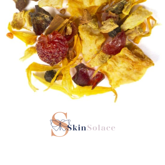 Blended with apple pieces, cinnamon, ginger, orange, rose hips, turmeric, mango pieces, marigold flowers, black peppercorn, natural mango flavour and natural orange flavour