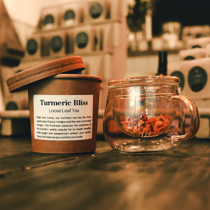 Bright and sunny, our turmeric tea has the fruity, sweet taste of juicy mangos and the zest of aromatic oranges. The fruitiness balances the earthiness of the turmeric, widely popular for its health benefits, while ginger and peppercorn enliven your senses. Savour the taste as you comfort your body.