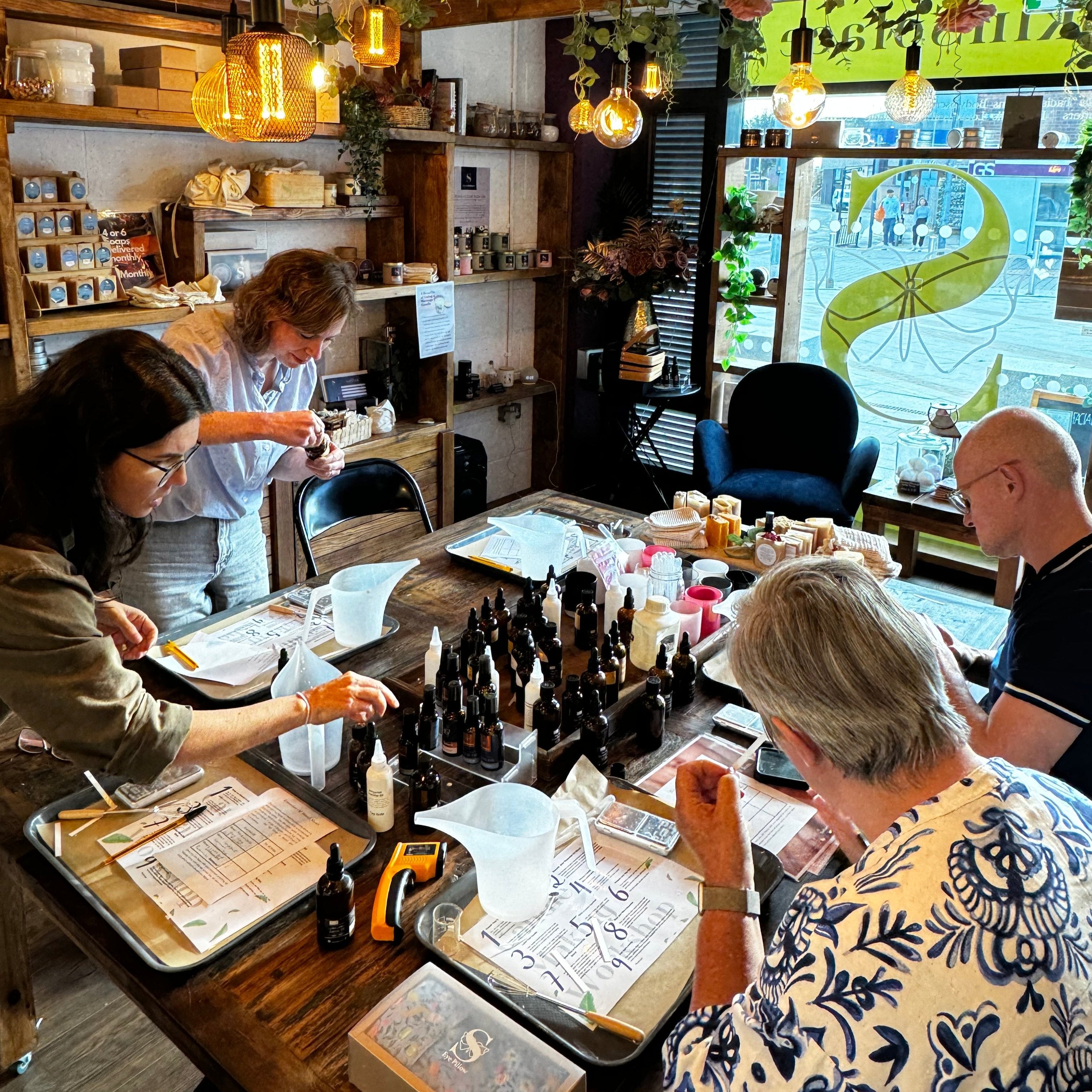 Collaborate in pairs to create four distinct blends and present them to the bride who chooses the perfect aroma. Book spaces for you and seven others now.